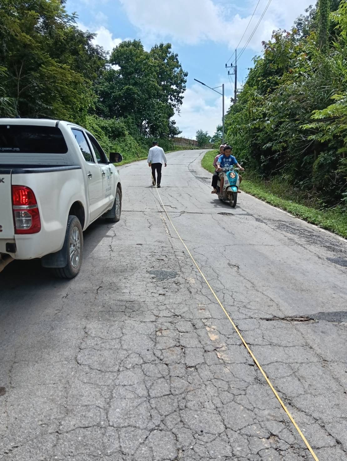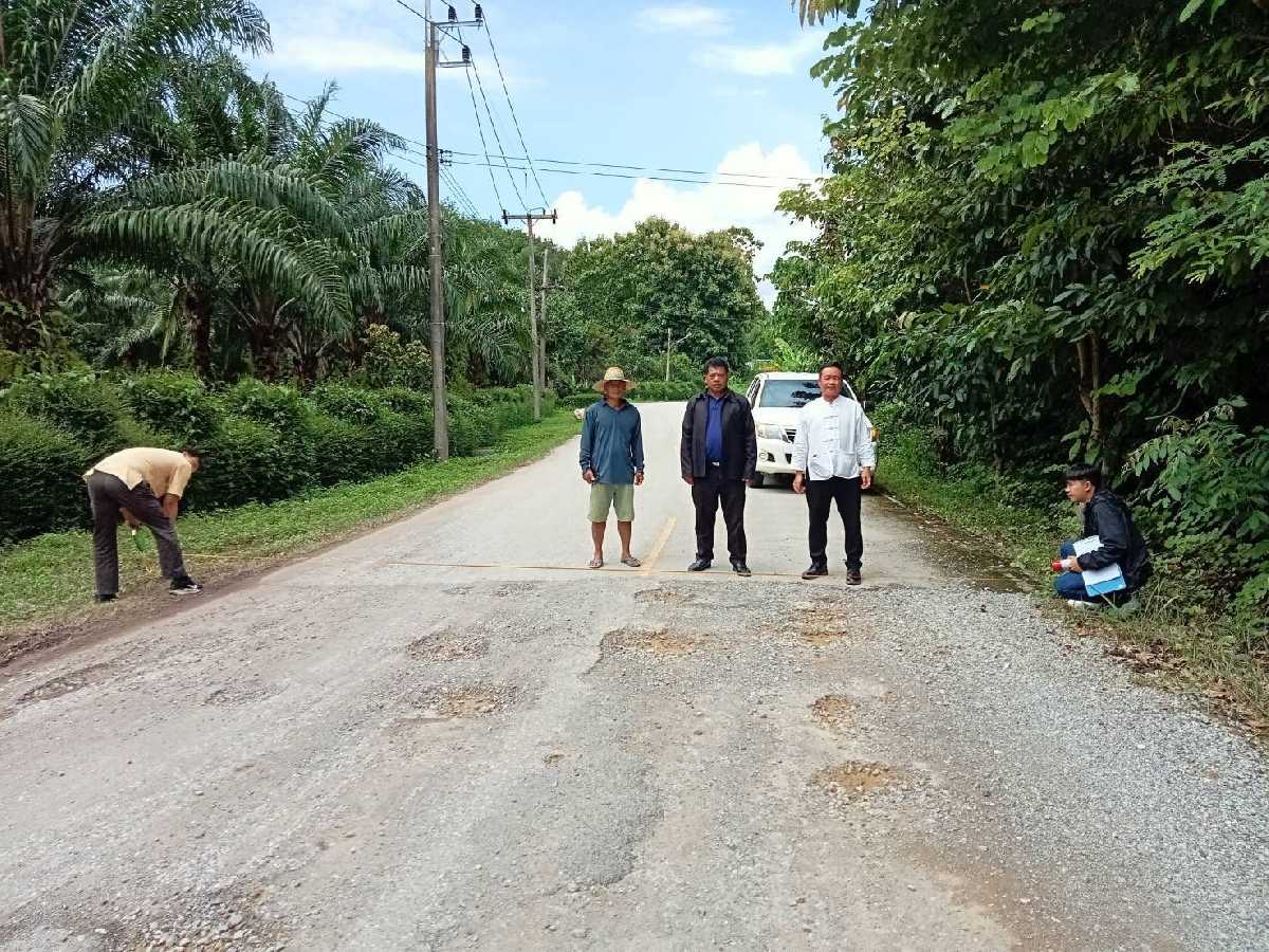 ลงพื้นที่สำรวจถนนลาดยางทางเข้าหมู่บ้านที่ชำรุดเสียหาย บ้านทุ่มโป่ง หมู่ที่ 9