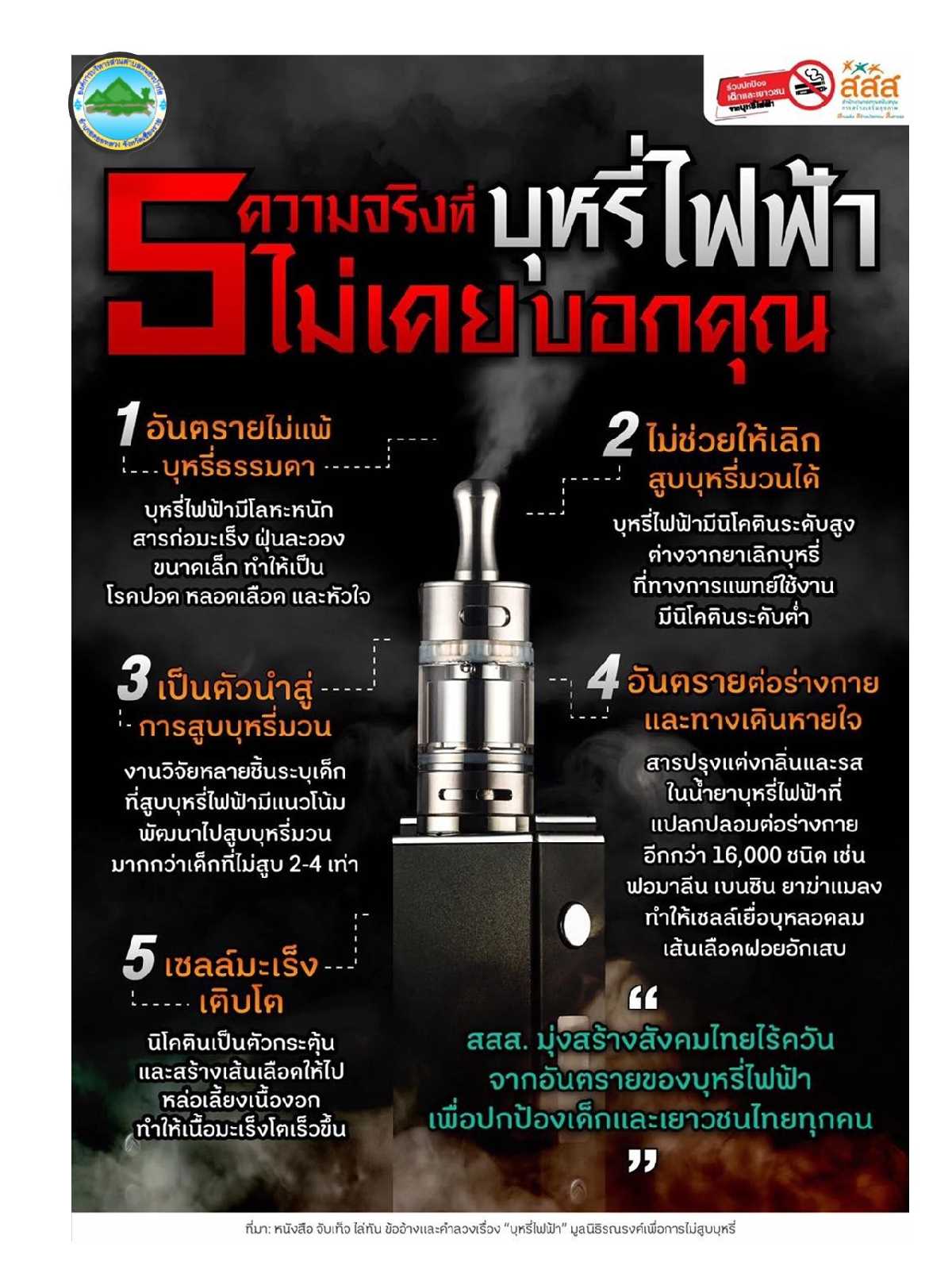 ⚠️ เตือน !! ควันบุหรี่ไฟฟ้า เป็นอันตรายต่อตนเอง และคนรอบข้าง ‼️ เพราะนอกจากนิโคติน ควันบุหรี่ไฟฟ้ายังมีโลหะหนัก ที่เป็นสารก่อมะเร็ง เสี่ยงโรคปอด หลอดเลือด หัวใจ