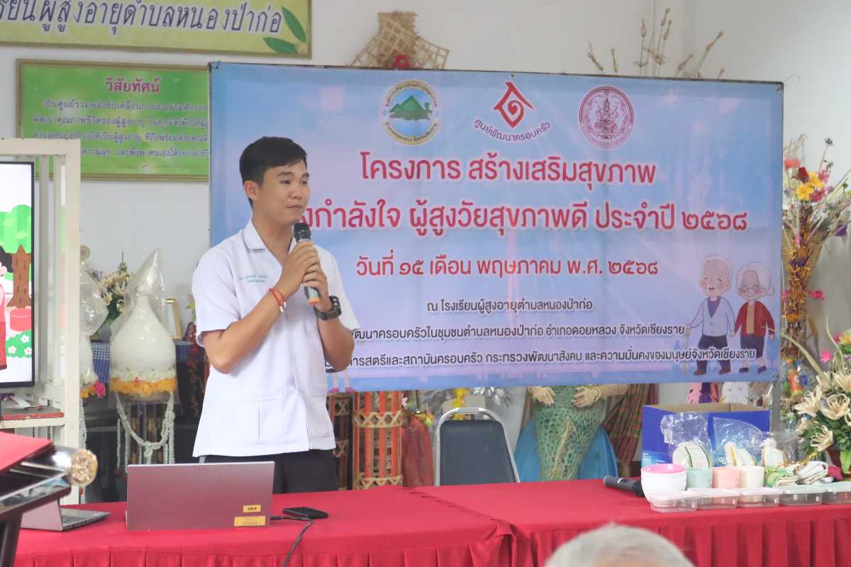 วันที่ 15 พฤษภาคม 2568 องค์การบริหารส่วนตำบลหนองป่าก่อ โดยนายอรุโณทัย ปิมลือ นายกองค์การบริหารส่วนตำบลหนองป่าก่อ คณะผู้บริหาร เจ้าหน้าที่องค์การบริหารส่วนตำบลหนองป่าก่อ จัดโครงการสร้างเสริมสุขภาพสร้างกำลังใจให้ผู้สูงวัยสุขภาพดี ประจำปี 2568 ณ โรงเรียนผู้สูงอายุตำบลหนองป่าก่อ อำเภอดอยหลวง จังหวัดเชียงราย