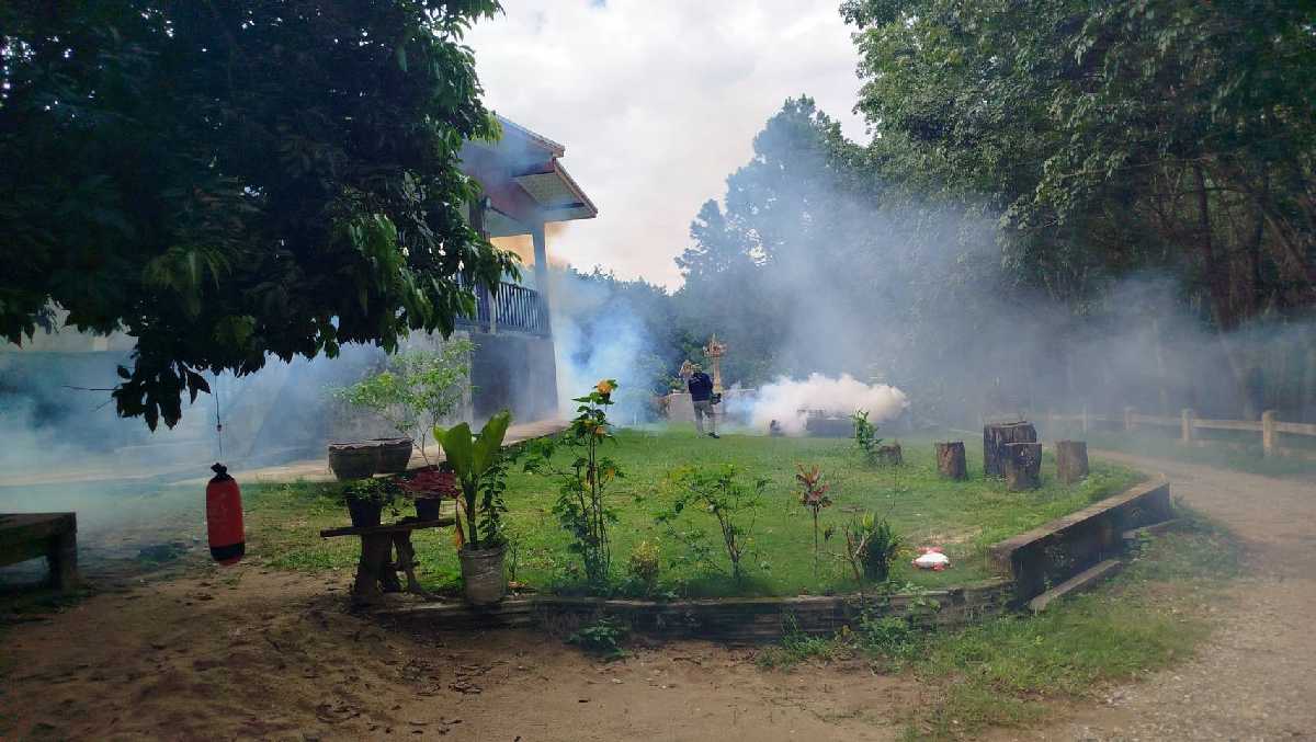 ลงพื้นที่พ่นหมอกควันเพื่อทำการควบคุมโรคไข้เลือดออก