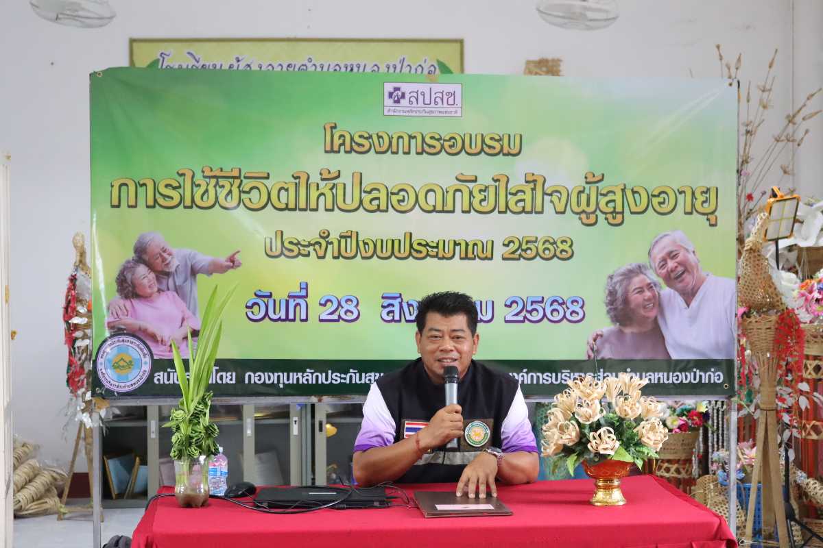 วันที่ 28 สิงหาคม 2568 องค์การบริหารส่วนตำบลหนองป่าก่อ โดย นายอรุโณทัย ปิมลือ นายกองค์การบริหารส่วนตำบลหนองป่าก่อ เจ้าหน้าที่องค์การบริหารส่วนตำบลหนองป่าก่อ จัดอบรมโครงการใช้ชีวิตให้ปลอดภัยใส่ใจผู้สูงอายุ ณ อาคารโรงเรียนผู้สูงอายุตำบลหนองป่าก่อ