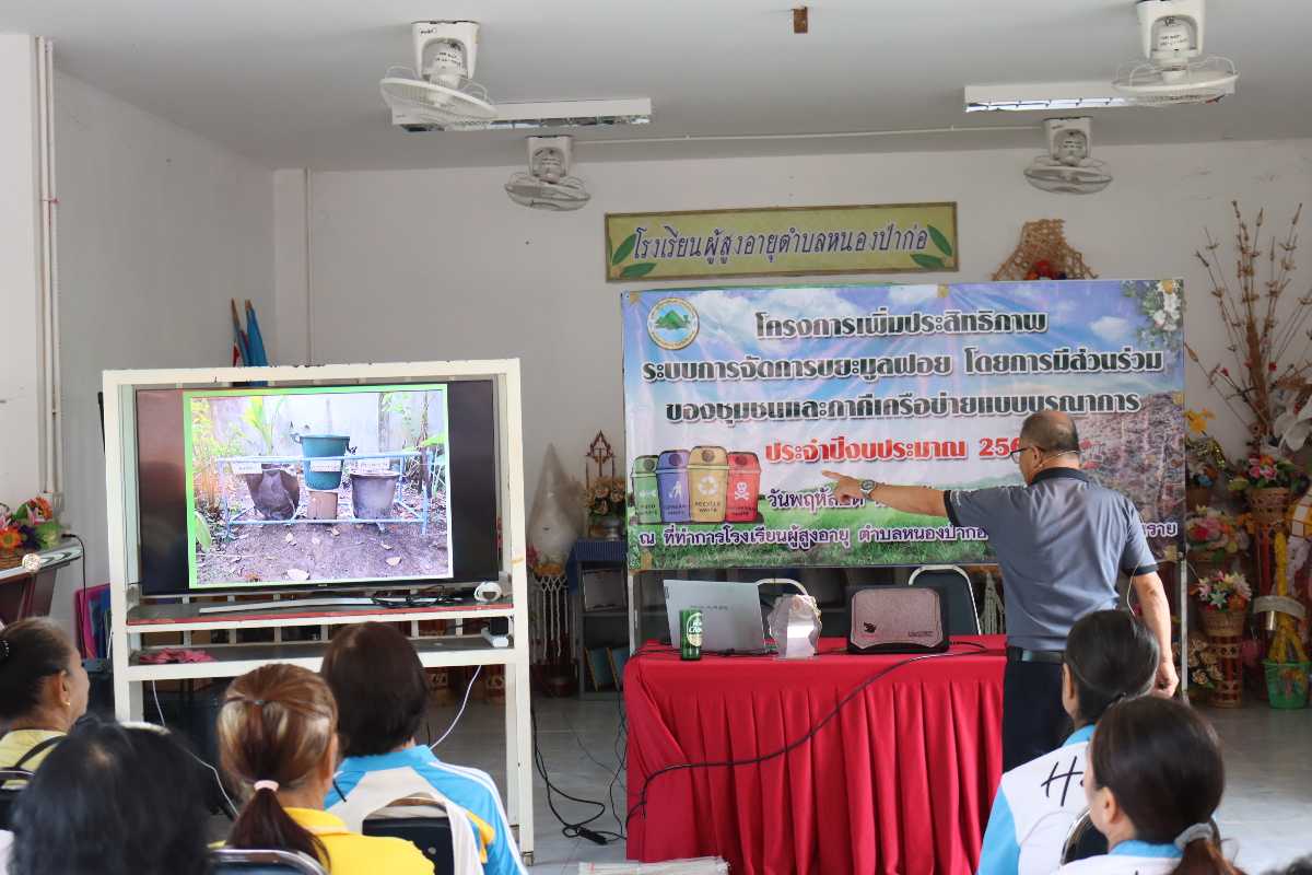 วันที่ 4 กันยายน 2568 องค์การบริหารส่วนตำบลหนองป่าก่อ โดยนายอรุโณทัย ปิมลือ นายกองค์การบริหารส่วนตำบลหนองป่าก่อ นายวิทยา ถุงแก้ว ปลัดองค์การบริหารส่วนตำบลหนองป่าก่อ และเจ้าหน้าที่องค์การบริหารส่วนตำบลหนองป่าก่อ จัดโครงการเพิ่มประสิทธิภาพระบบการจัดการขยะมูลฝอย โดยการมีส่วนร่วมของชุมชนและภาคีเครือข่ายแบบบูรณาการ ประจำปีงบประมาณ 2568 ณ อาคารโรงเรียนผู้สูงอายุตำบลหนองป่าก่อ